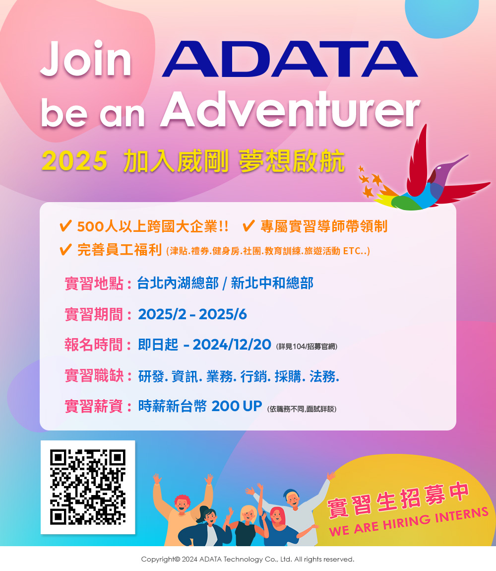 威剛科技正在招募2025年的實習生,歡迎系上同學參加!!